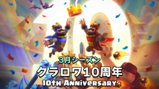 クラッシュ・ロワイヤル(クラロワ)で1シーズン(1ヶ月)の間に起こったことを記録する記事です。今回は3/2(月)から始まった3月シーズンです。2(月) シーズン開始シーズン名【英語】10th Anniversary【日本語】クラロワ10周年...