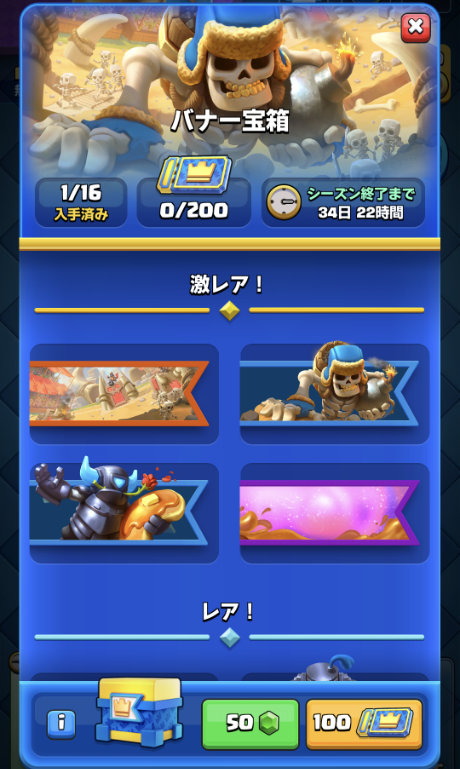 バナー宝箱の中のバナーアイテムは入手確率によって3段階に分けられています。