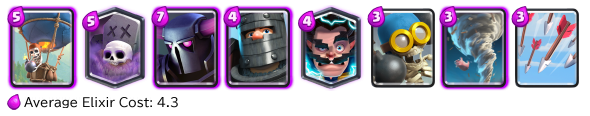 スケルトンラッシュ+迫撃砲を含むデッキは8種類、19人が使用。