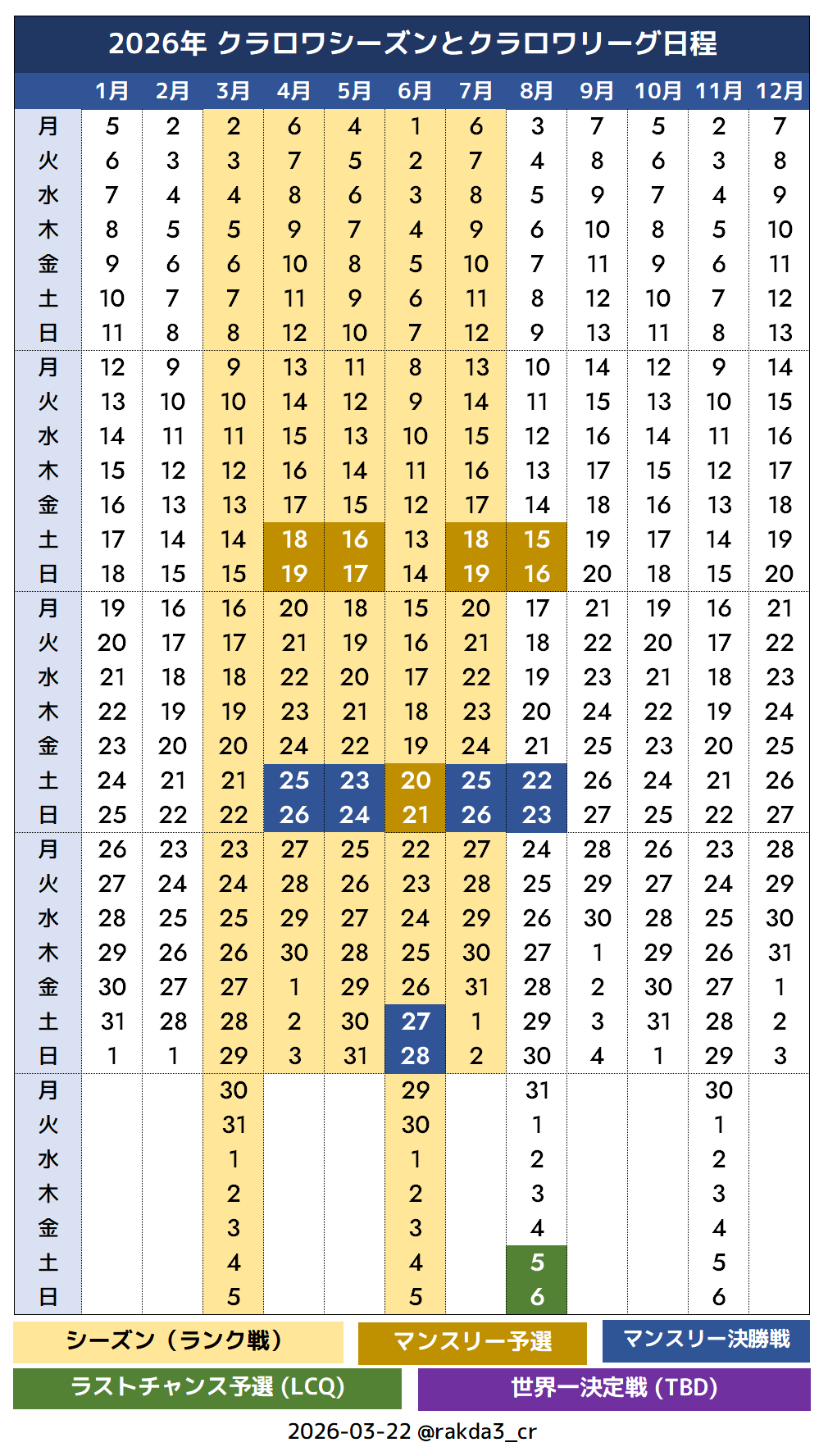 [2026-03-22] カレンダーに間違いがあったので修正しました。6月のマンスリーイベントの日程は変則的となっています。