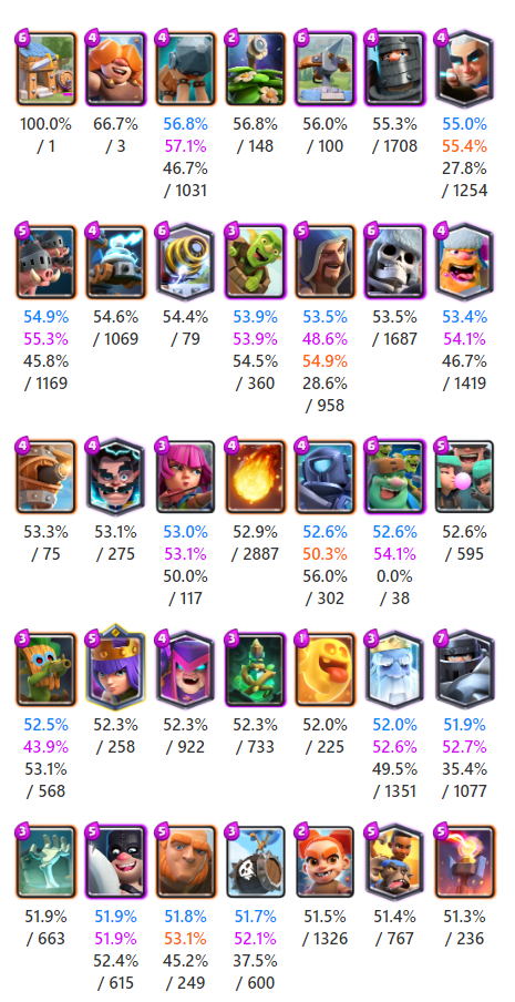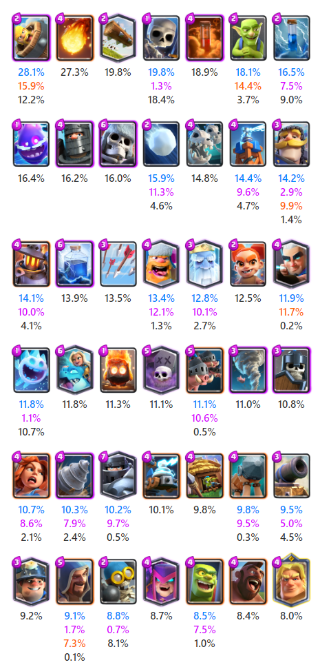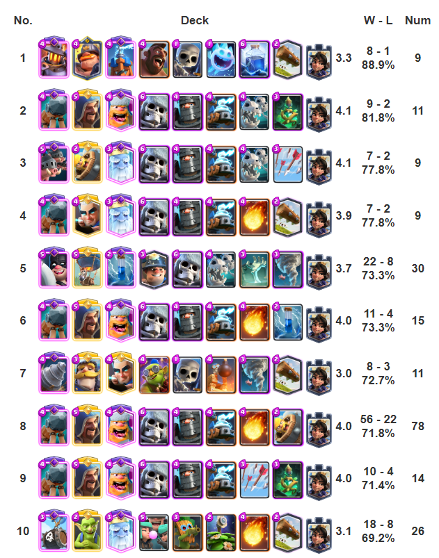 デッキの勝率順で見た時に特に巨大スケルトンが目立ちますね。