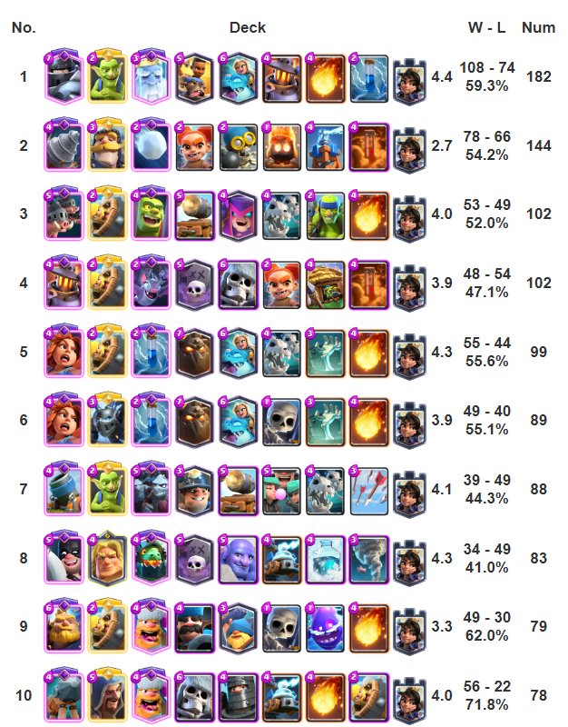 クラロワAPIを使用して今回のスイス式で使用されたデッキを調べた所、デッキの数は全部で10566デッキとなりました。