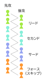最後の4番目はスキップが投げる事が多いので、リード、セカンド、サード、スキップという形が多いです。