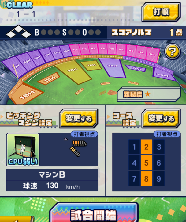各ステージ、少ない打者人数でクリアすることによって報酬を獲得します。