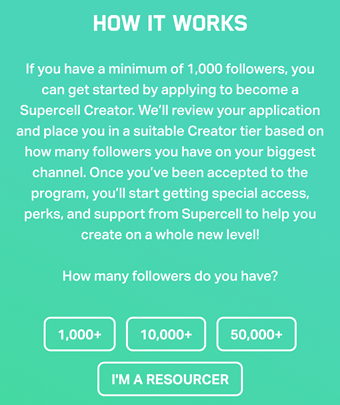 > If you have a minimum of 1,000 followers, you can get started by applying to become a Supercell Creator.